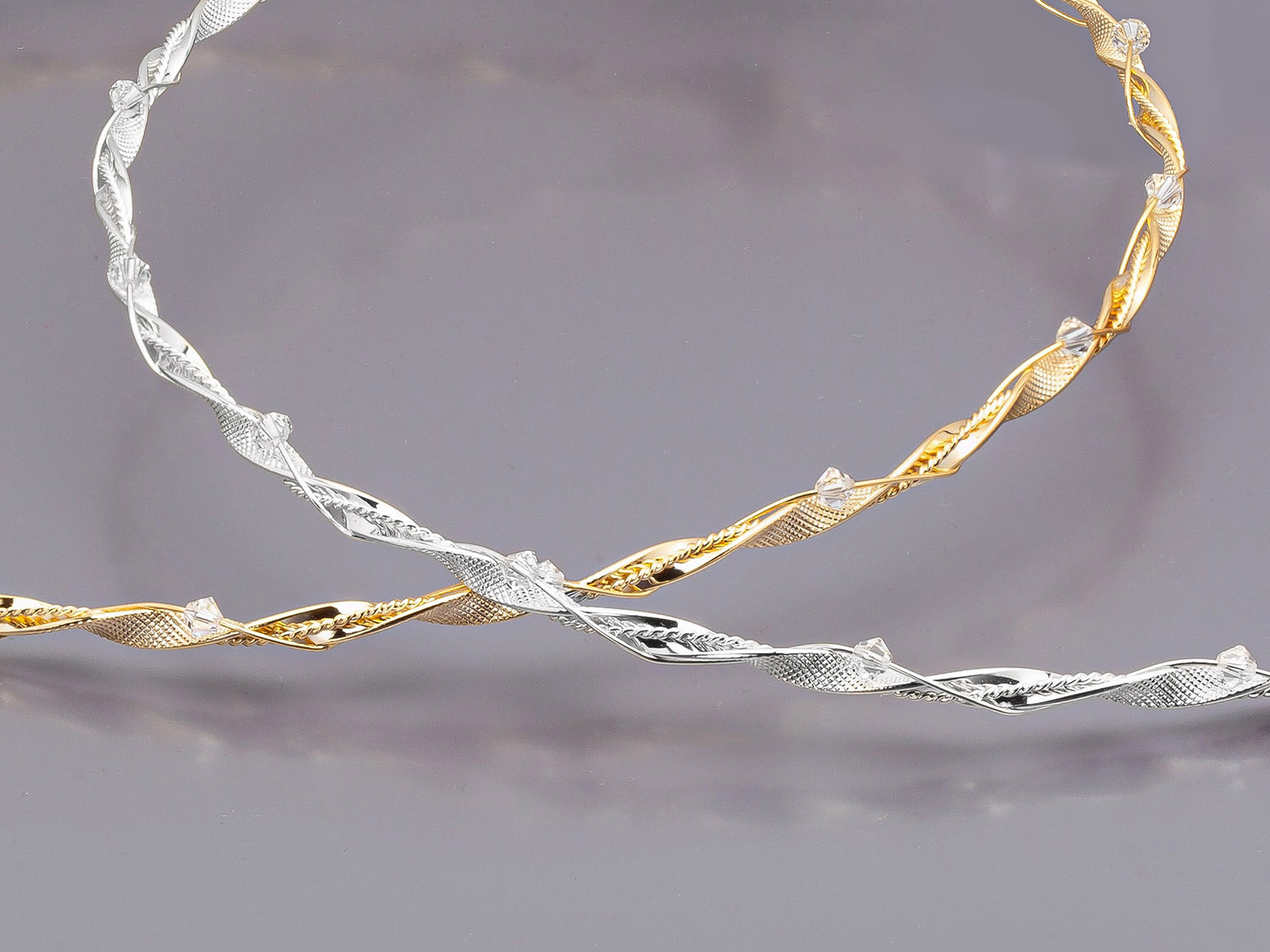 Στέφανα γάμου «Madonna» για την ημέρα των ονείρων σας. Χειροποίητα στέφανα γάμου επάργυρα ή ασημένια.Δύο πλακέ ταινίες διαμαντοβολή πλεγμένες μεταξύ τους,η μια επάργυρη και η άλλη πιο στενή χρυσή ή ροζ. Μεγάλη ποικιλία σχεδίων με πάνω από 150 διαφορετικά και πρωτότυπα σχέδια. Για τα ασημένια επικοινωνήστε με το εργαστήριο.